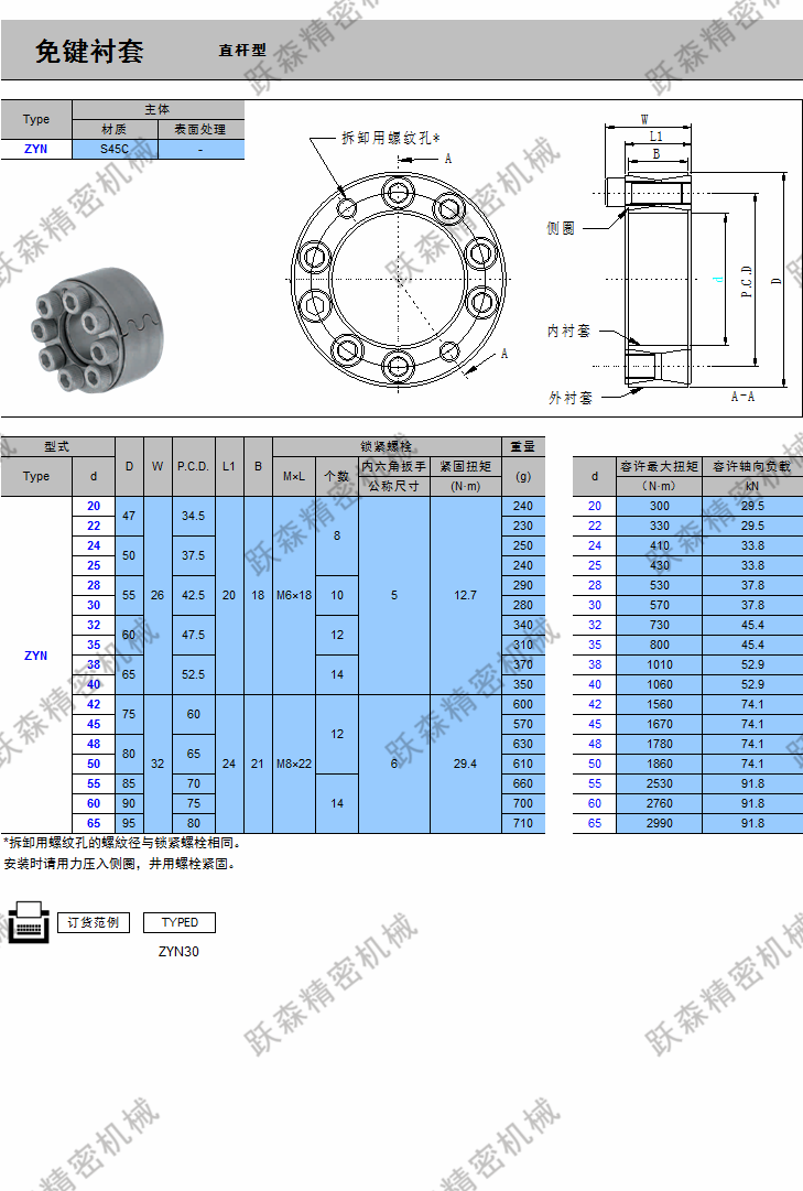 产品名称: 免键轴衬-直杆型